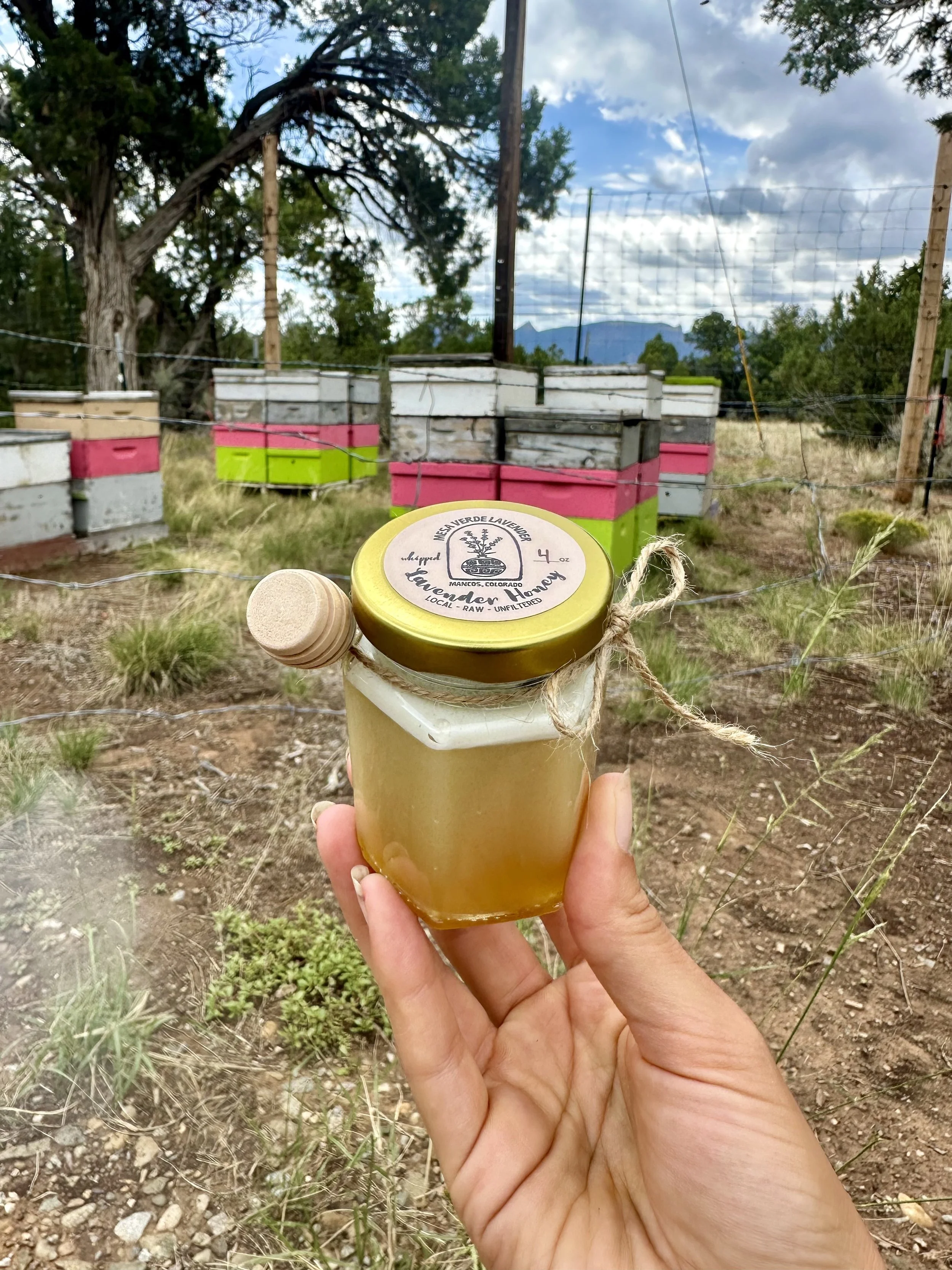 Our Mesa Verde Lavender Honey is a delightful blend of raw, unfiltered honey infused with the rich, aromatic flavor of our culinary lavender. Sourced from the happy bees that roam our lavender fields in Southwest Colorado, this honey is a perfect balance of sweetness and floral notes. We enjoy working with our local beekeepers, Ben and Cheyenne, who bring the bees to our farm each season and tend to their every need! Enjoy our lavender infused honey drizzled over toast, stirred into tea, or as a natural sweetener in your favorite recipes. Every jar captures the essence of our local lavender farm, making it a unique treat for culinary enthusiasts.